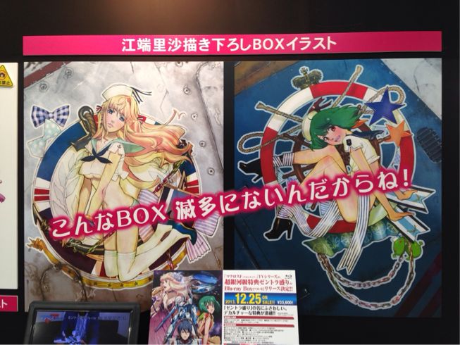一番くじのコーナーで11月発売のマクロスくじの景品とBOXの書き下ろしイラストが展示されていました!早くくじ引きたいです♡